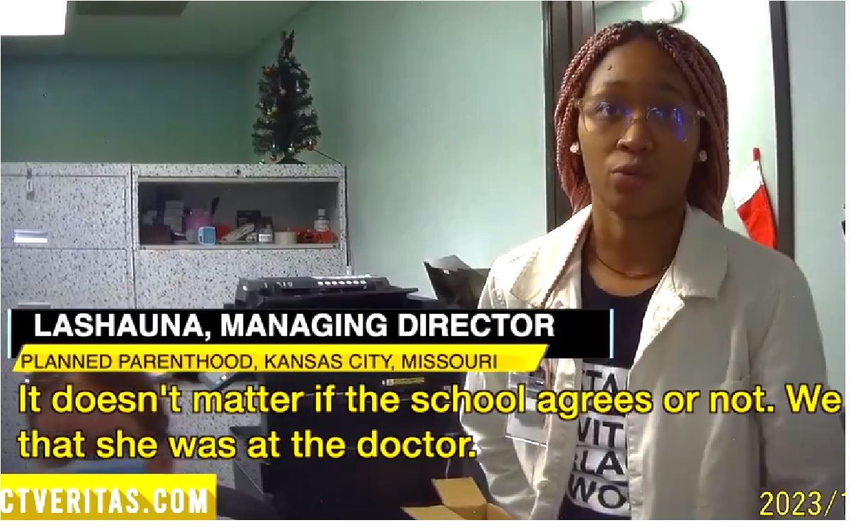 También verificó que la planificación, el transporte y los abortos están todos coordinados “dentro de Planned Parenthood”. Luego, el periodista preguntó si la niña podría “obtener permiso de un maestro para sacarla de la escuela durante el día escolar”. Lashauna explicó que “podríamos dar una nota del médico” que la escuela no puede negarse a aceptar. Si esta fuera la ruta tomada, los padres no serían informados, y Planned Parenthood “puede cortar nuestro membrete, por lo que ni siquiera dice dónde estaba”.